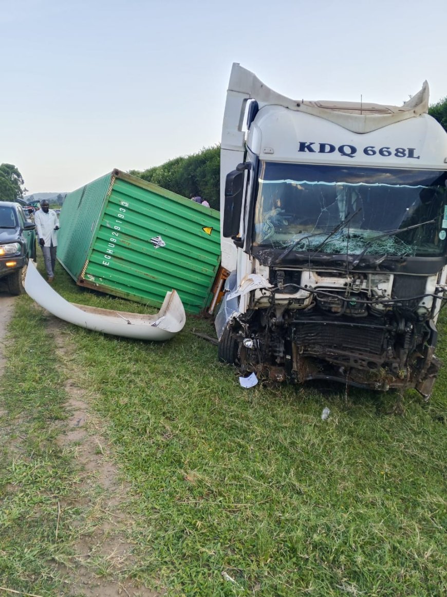 Police in the Rwizi Region said the collision happened at about 6:30pm on Friday at Kibega I Village. The crash involved a white Toyota Hiace taxi, registration number UBQ 016U, and a Mercedes-Benz Actros trailer, registration numbers KDQ 668L/ZH 5133.