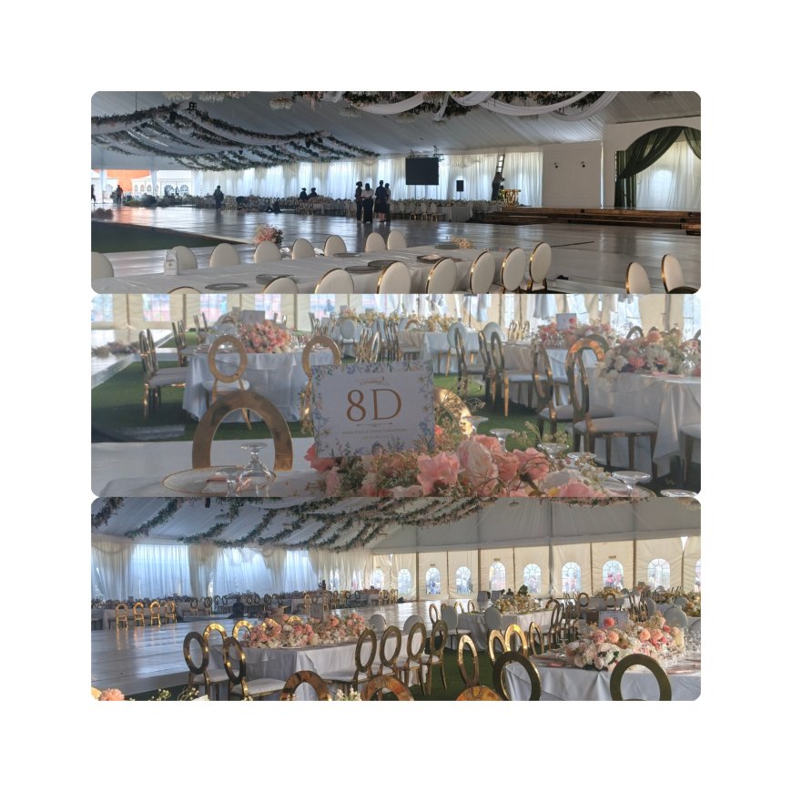 According to Mrs. Kyomuhendo, the setup features a 30x100-foot tent with decorations nearly complete ahead of the event. Each couple will be joined by ten family members, creating a warm, family-centered celebration.