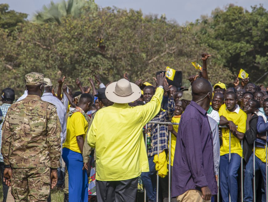 In Alebtong, Museveni highlighted government achievements in the district, pointing to electricity connections, the upgrading of the Lira–Aloi–Apala–Alebtong–Abim road, and the presence of 76 government UPE schools, 122 private schools, and seven USE secondary schools. He also cited government programs like the Parish Development Model (PDM), Emyooga, Youth Livelihood Fund, and the Women Fund as key wealth creation initiatives supporting households.