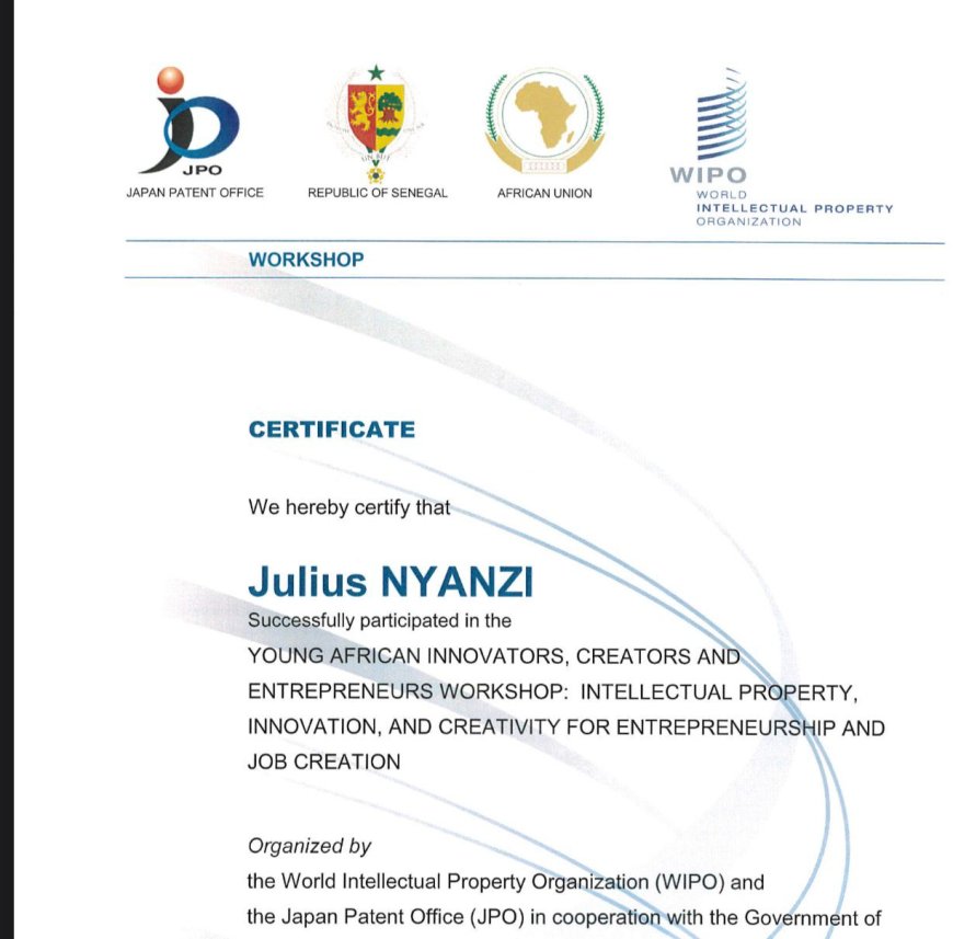 Contrary to claims that exaggerate or misrepresent his credentials, Julius Nyanzi’s innovation journey is neither recent nor self-proclaimed. His intellectual promise was identified at just 20 years of age by the World Intellectual Property Organization (WIPO), a respected United Nations body tasked with fostering global innovation and protecting intellectual property.
